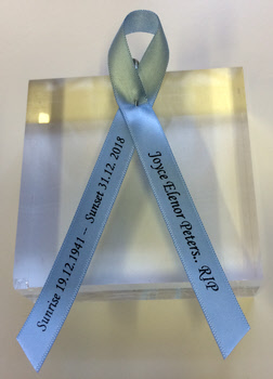 Our personalised funeral and memorial ribbons are used by many families as a way of expressing their feelings in a beautiful and subtle way.